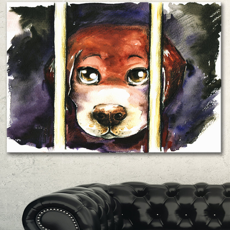 Designart Sad Dog In Animal Shelter Graphic Art Print On Wrapped